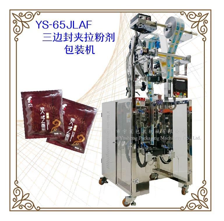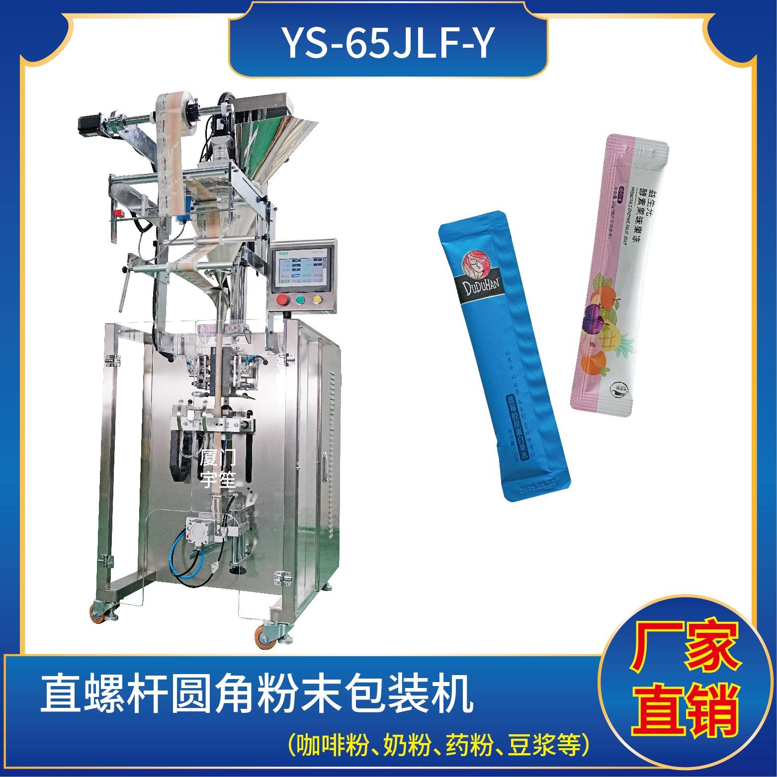 YS-65JLBF-Y 夾拉圓角粉劑包裝機特 點 1、適用于食品、醫(yī)藥、化工、化妝品行業(yè)中粉劑等物品的計量包裝。.2、可自動完成制袋、計量、下料、封合、分切、計數(shù)、且可根據(jù)客戶要求配置打印批號等功能。3、觸摸屏操作,PLC 控制,伺服電機控制袋長,性能穩(wěn)定、調(diào)整方便、檢測準確。智能式溫控儀,PID調(diào)節(jié),保證將溫度的誤差范…