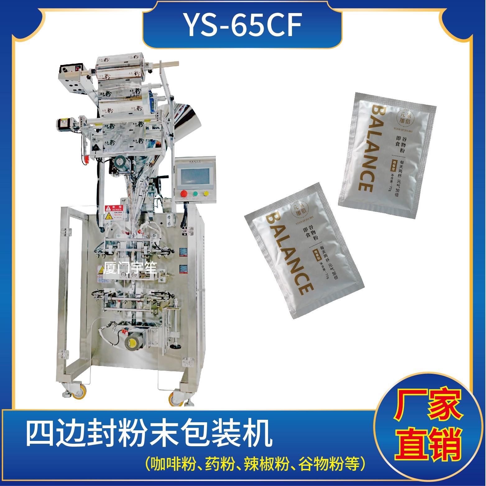 YS-65JLBF-Y 圓角粉劑包裝機特 點 1、適用于食品、醫(yī)藥、化工、化妝品行業(yè)中粉劑等物品的計量包裝。.2、可自動完成制袋、計量、下料、封合、分切、計數(shù)、且可根據(jù)客戶要求配置打印批號等功能。3、觸摸屏操作,PLC 控制,伺服電機控制袋長,性能穩(wěn)定、調(diào)整方便、檢測準確。智能式溫控儀,PID調(diào)節(jié),保證將溫度的誤差范圍控…