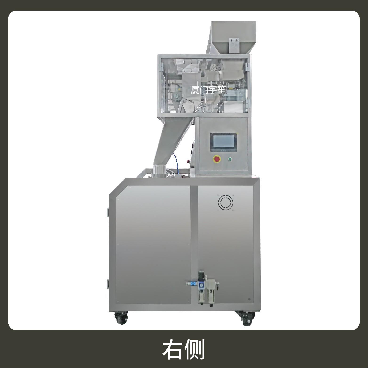 2、用于自封袋、站立袋、拉鏈袋,可抽真空、充氮?dú)?。包裝流程全自動(dòng),無(wú)需人工操作。可根據(jù)充填物料的性質(zhì)選配不同的下料結(jié)構(gòu),且可根據(jù)客戶要求配置打印批號(hào)等功能。