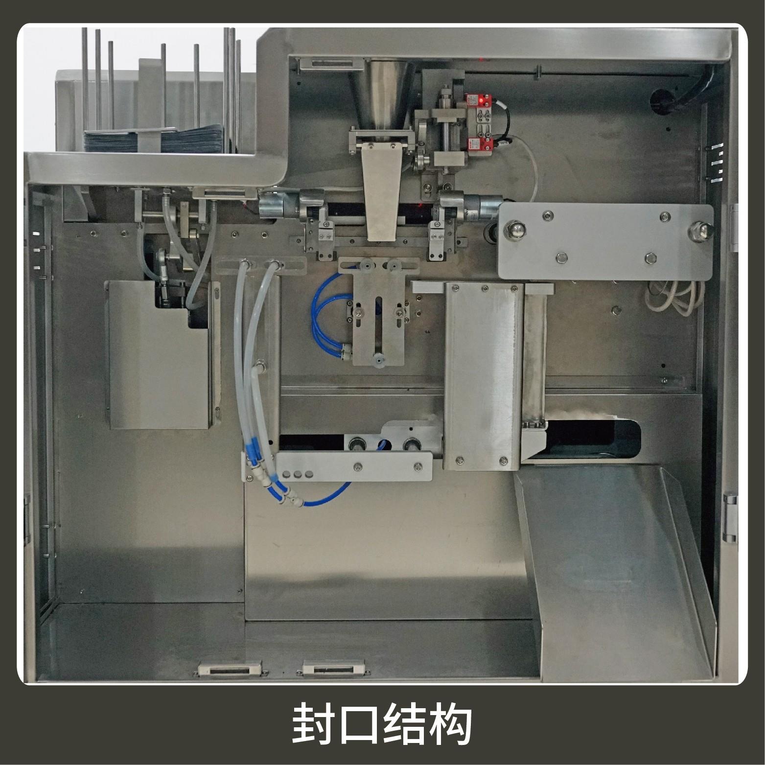 2、調(diào)試方便、占用空間小。包裝流程全自動,無需人工操作。可根據(jù)充填物料的性質(zhì)選配不同的下料結(jié)構(gòu)。