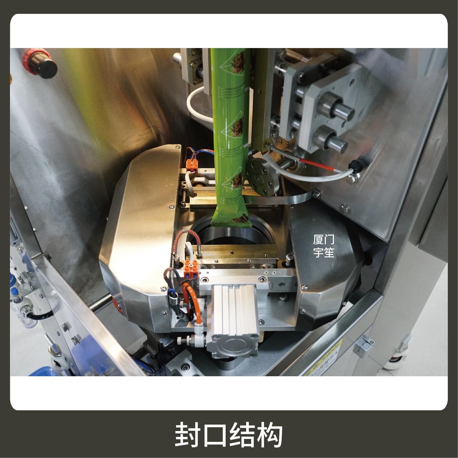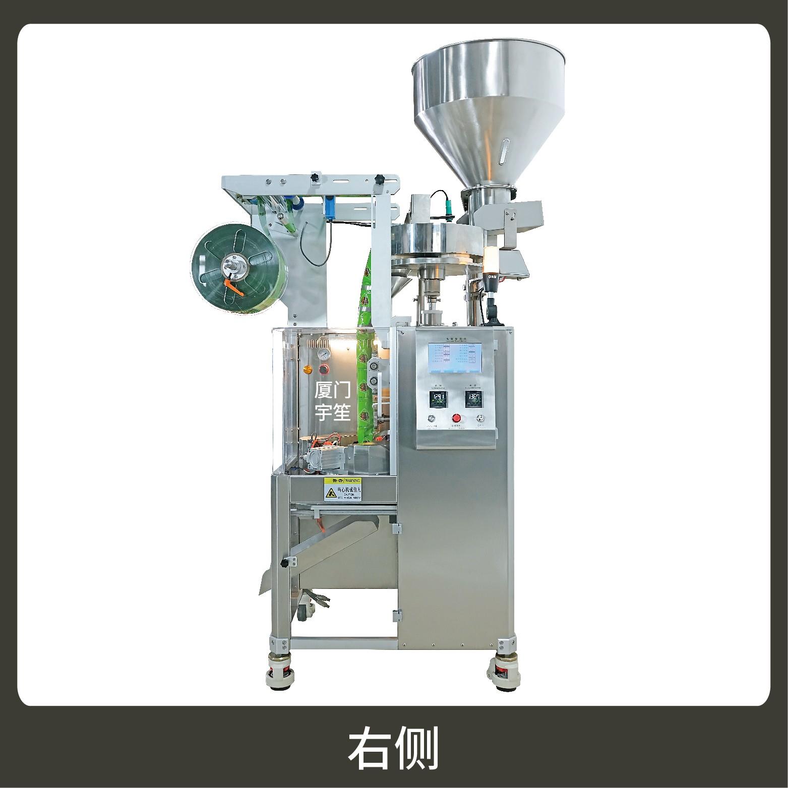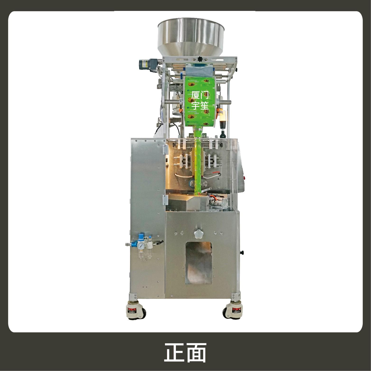 2、一機多用,一鍵切換封口形式(三邊封、背封、三角袋),可自動完成制袋、計量、下料、封合、分切、計數(shù)、且可根據(jù)客戶要求配置打印批號等功能。